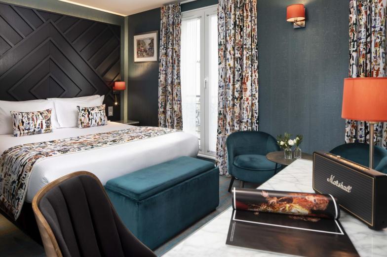 If aesthetics matter to you, Hôtel Le Ballu takes the cake. Multicolored vintage rules here, every piece of furniture and every artwork is precisely where it should be, and you’ve got a picturesque inner garden for warm weather enjoyment too. You will stay in the heart of the arts-filled 9th arrondissement with Place de Clichy and Blanche metro stations in close vicinity. The choice of units is rather impressive for a small boutique hotel in Paris. You have a plethora of nicely priced classic rooms and suites with street-facing balconies. But the showstopper is the apartment unit with a terrace that also comes with a kitchenette. The latter will be a great option for families visiting the French capital.